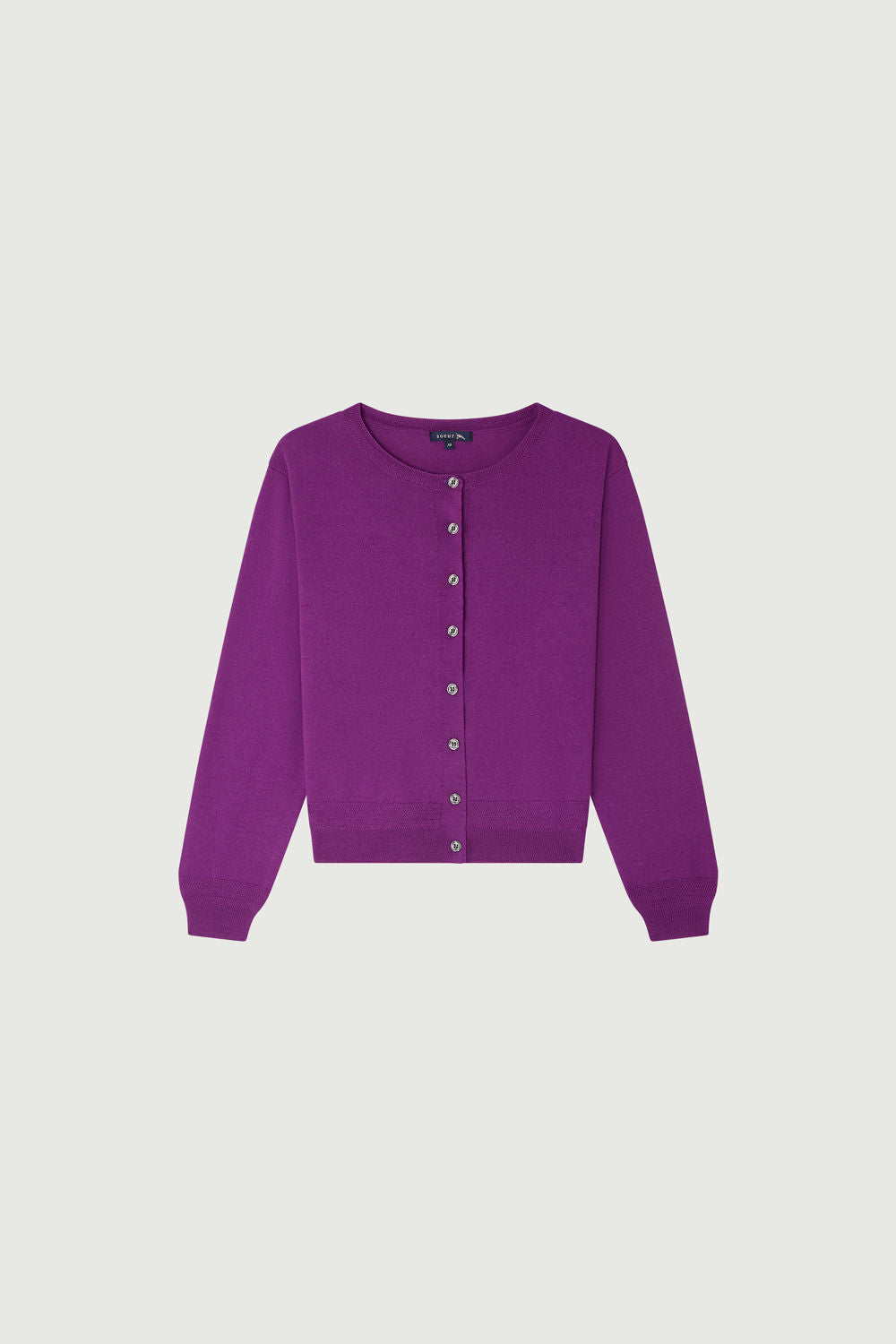 Short square merino wool cardigan fuchsia