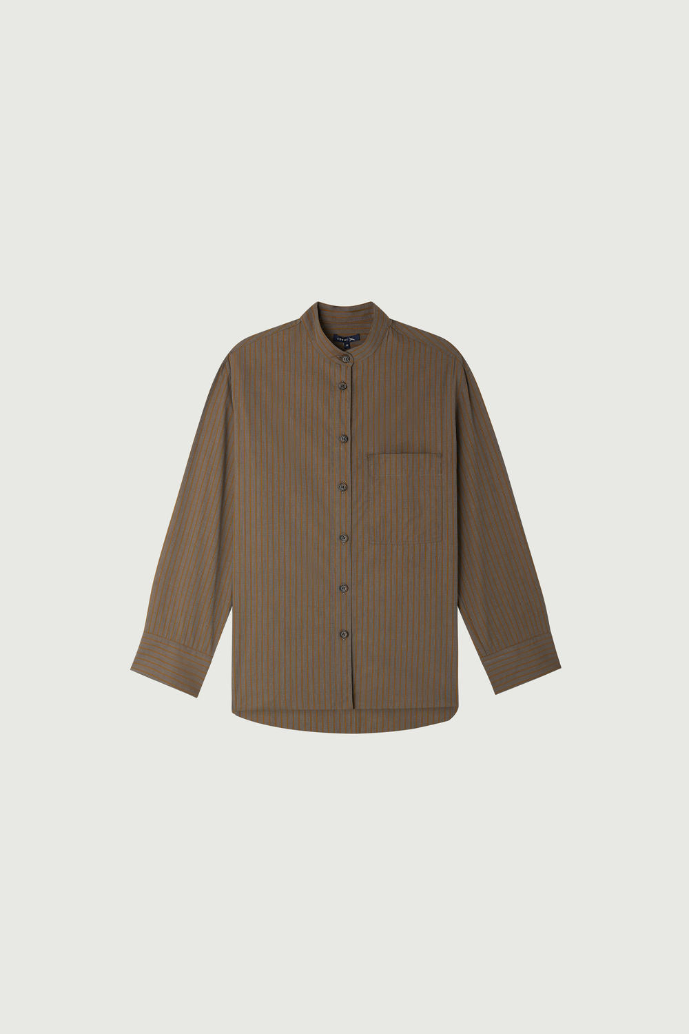 CALISTE is a blouse crafted from crinkled anthracite grey poplin. Enhanced with soft checks in shades of brown and pale pink, it can be effortlessly styled with a sleeveless jumper, or any piece from your wardrobe.