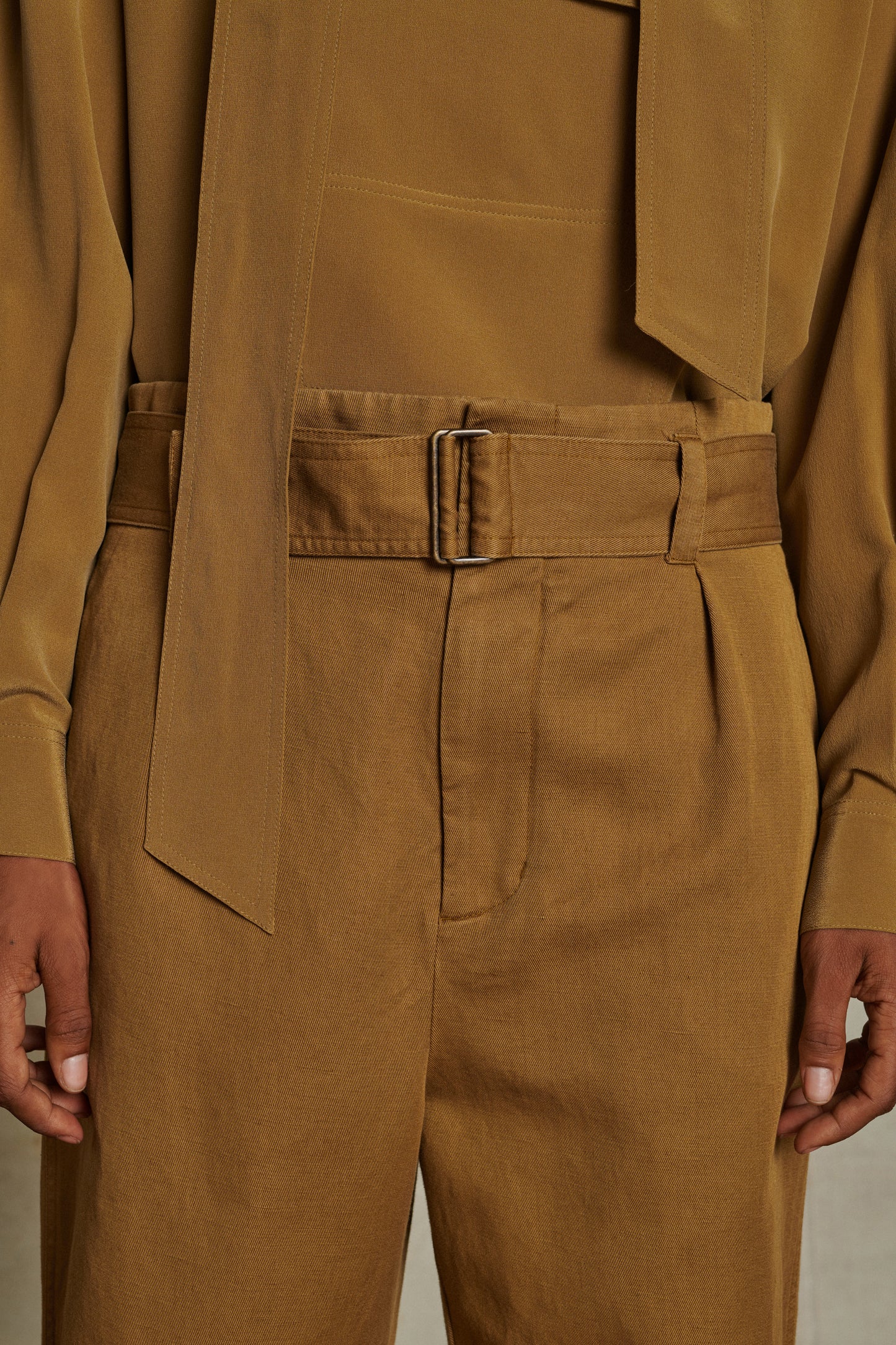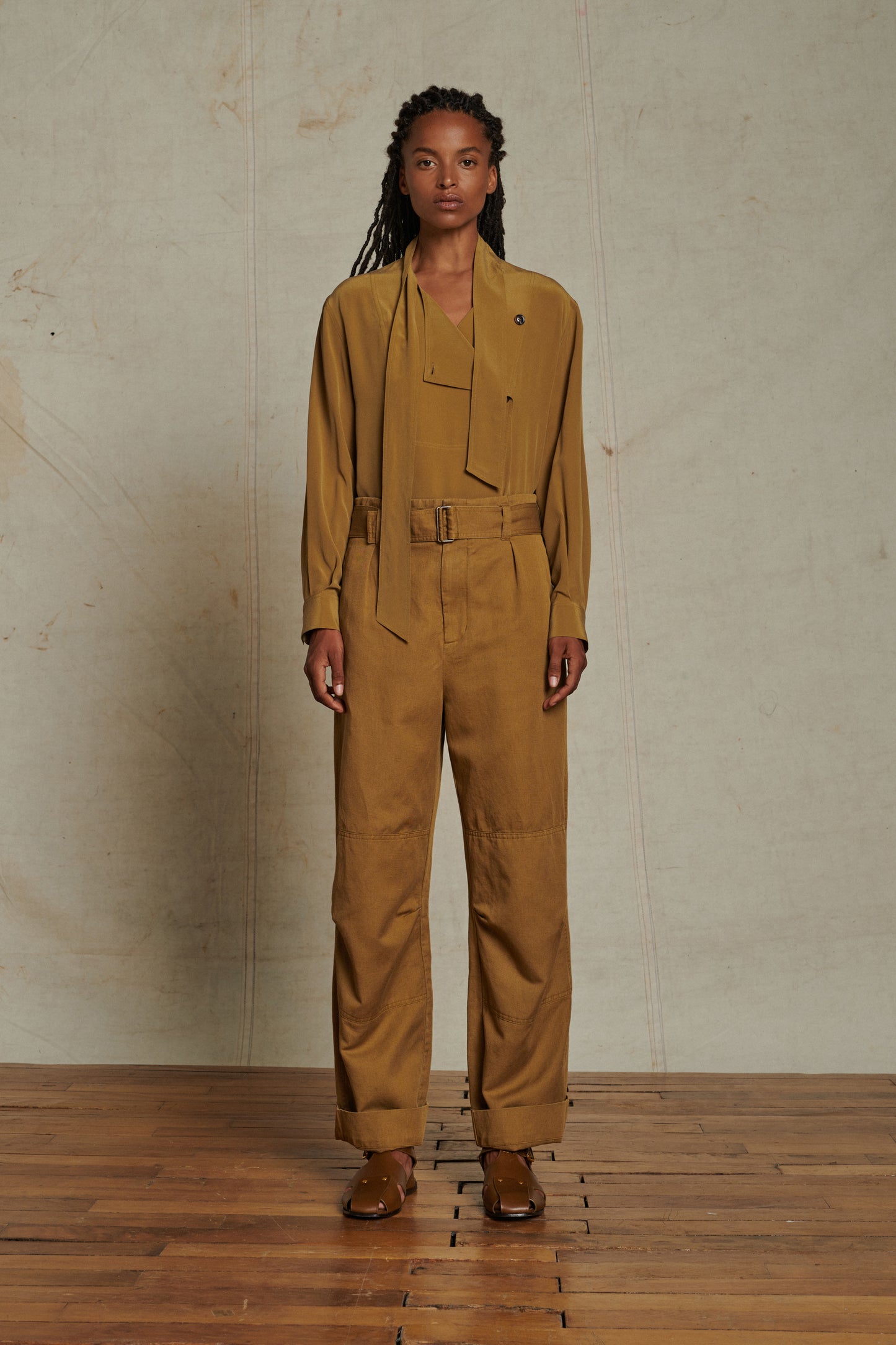 This cotton and linen blend creates a soft, fine, and lightweight fabric that's perfect for the spring-summer season. Utilizing a "garment wash" technique, the garment is washed post-construction to achieve a flexible and almost bleached look, similar to a pre-loved vintage piece.