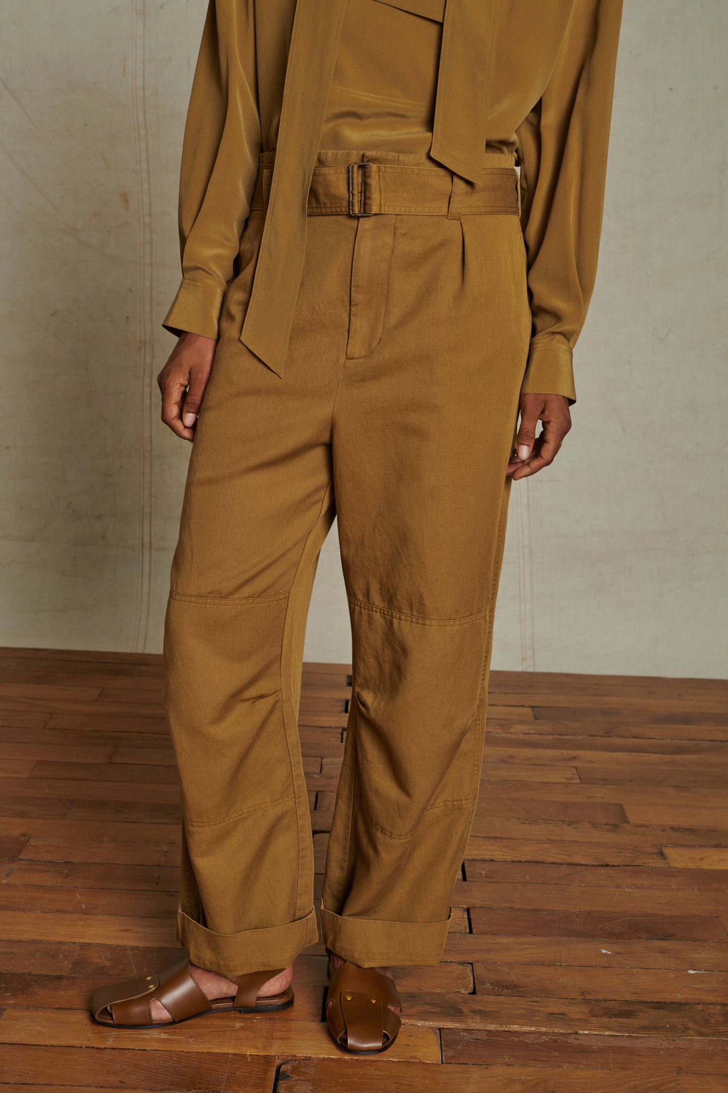 ANKARA is a soft, lightweight cotton canvas pant, perfect for transitioning into spring and summer. Its large front and back pockets echo the style of classic cargo pants. The knee patches and stitched pleats add a sporty touch to these everyday pants. The included belt allows for adjustable sizing.