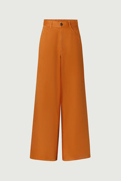 THABOR are wide-leg, straight-cut trousers. The fabric is a cotton twill, giving it a light yet durable appearance. This straight-fit model is reminiscent of "cargo" trousers. An adjustable button tab allows them to be worn high-waisted or low on the hips.